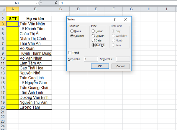 Làm sao để số thứ tự tự nhảy trong Excel?